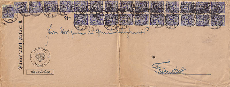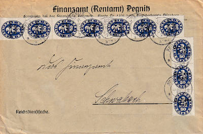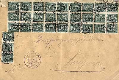 Inland cover (1-20 g) from 17.07.1922 franked with 10 stamps a 30 Pfennig (=3 Mark) |