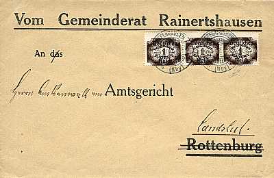 Inland cover (1-20 g) from 26.07.1922 franked with 3 stamps a 1 Mark (=3 Mark) |