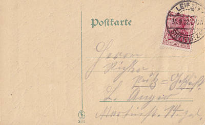 Local postcard from 31.08.1922 franked with one stamp a 75 Pfennig (=75 Pfennig)