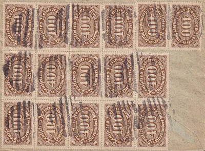 Ortsbrief (21-100 g) vom 29.08.1923 frankiert mit 120 Marken a 100 Mark (=12 000 Mark) |