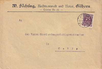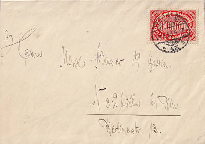 Inland cover (1-20 g) from 12.09.1923 franked with one stamp a 75 000 Mark on 50 Mark (=75 000 Mark) |