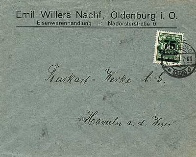 Inland cover (21-100 g) from 24.09.1923 franked with one stamp a 100 000 Mark (=100 000 Mark) |
