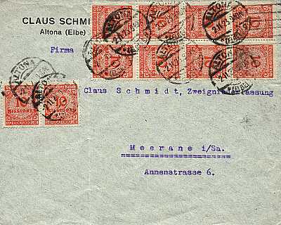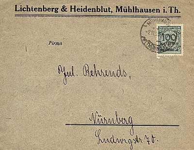 Inland cover (1-20 g) from 02.11.1923 franked with one stamp a 100 Million Mark (=100 Million Mark) |