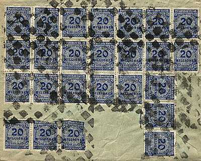 Ortsbrief (1-20 g) vom 07.11.1923 frankiert mit 25 Marken a 20 Millionen Mark(=500 Millionen Mark)