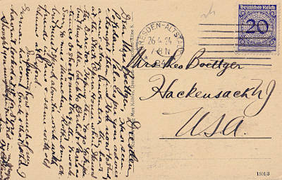 Auslandspostkarte vom 26.04.1924 frankiert mit einer Marke a 20 Pfennig (=20 Pfennig)