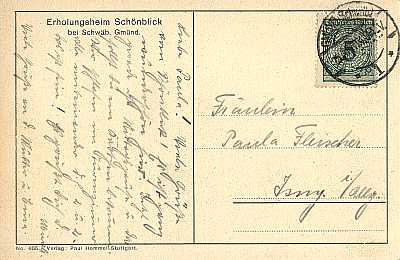 Inland postcard from 25.04.1924 franked with one stamp a 5 Pfennig (=5 Pfennig)