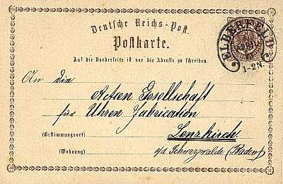Inlandspostkarte vom 18.02.1874 frankiert mit einem Wertstempel a 2 Kreuzer (=2 Kreuzer)