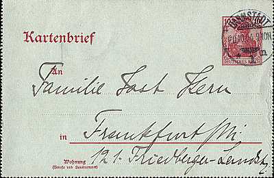 Inlandskartenbrief vom 20.10.1904 (1. Periode) frankiert mit einem Wertstempel a 10 Pfennig (=10 Pfennig) |