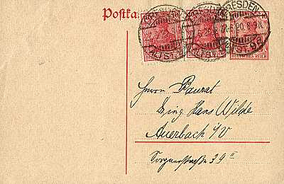 Ortspostkarte vom 09.03.1911 (1. Periode) frankierte mit einem Wertstempel a 3 Pfennig (=3 Pfennig) |