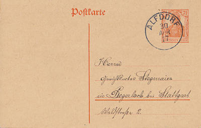 Inlandspostkarte vom 27.06.1920 (5. Periode) frankiert mit einem Wertstempel a 10 Pfennig und 2 Marken (=30 Pfennig) |