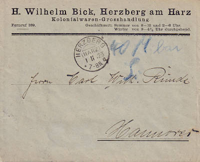 Inland cover (1-20 g) from 01.11.1923 (22. Period) franked with 100 Million Mark (60 Million in stamps, 40 Million cash) |