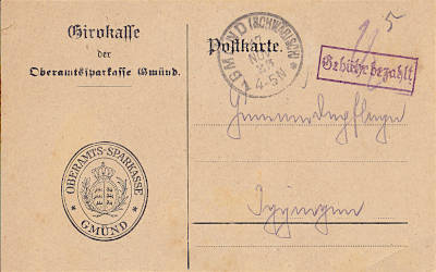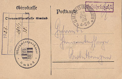 Foreign postcard from 28.08.1923 (16. Period) franked with 8 000 Mark; to Austria the inland fee was valid |