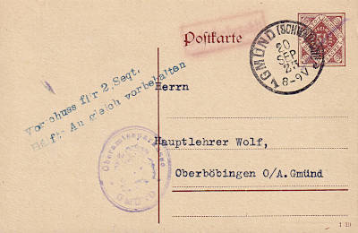 Inland postcard from 20.09.1923 (18. Period) franked with 100 000 Mark |