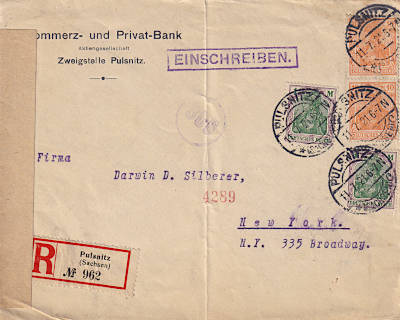 Auslandsbrief mit Einschreiben in die USA mit braunem Zensurstreifen |