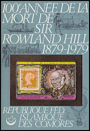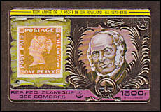 16.12.1978 100th anniversary of the death of Sir Rowland Hill with perforation or withoutseparation with embossed gold metal foil