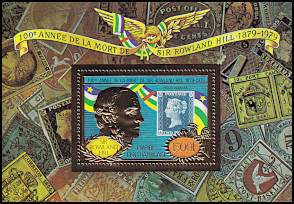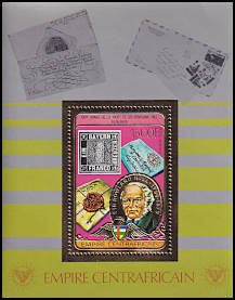 09.12.1978 100th anniversary of the death of Sir Rowland Hill with perforation or without separation withembossed gold metal foil
