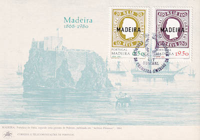 Ersttagspostkarte frankiert mit 2 Marken112 Jahre Briefmarken auf Madeira
