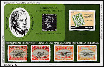 Großbritannien 1 Penny 1840, Bolivien5 Centavos, 10 Centavos, 50 Centavos und 50 Centavos 1930