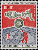 Apollo 18 and Soyuz 19 space capsules, mission patch of Apollo-Soyuz, partial view of the Earth