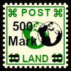 diagonaler anstatt stehender Aufdruck: Briefmarke die durch eine Fehlleistung mit einem diagonalen anstatt einem waagrechten Aufdruck versehen wurde |