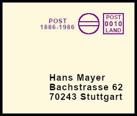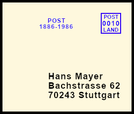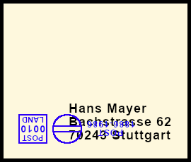 rückseitiger Freistempel: Postsendung die durch eine Fehlleistung mit einem Freistempel auf der Rückseite versehen wurde |