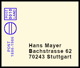 kopfstehender Freistempel: Postsendung die durch eine Fehlleistung mit einem um 180 Grad gedrehten waagrechten Freistempel versehen wurde |
