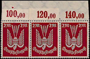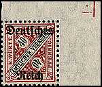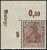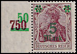 Aufdrucknennwert auf einem Bogenrand: Kennzeichnung auf einem Bogenrand um den schlecht sichtbaren Nennwert des Aufdrucks hervorzuheben |