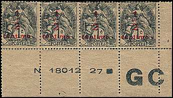 GC-Papier: Papierartkennzeichnung auf dem Bogenrand französichen Briefmarken während des 1. Weltkriegs die auf einem minderwert- igen, porösen und holzschliffhaltigen Papier mit rauher