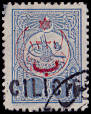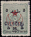 mit Drittaufdruck: Briefmarke die als beabsichtigte Ausführung mit einem Drittaufdruck versehen wurde |