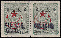 Paar eine Marke mit doppeltem Dritt-aufdruck: Paar bei dem als beabsichtigte Ausführung der Drittaufdruck bei der einen Briefmarke zweifach ausgeführt wurde |