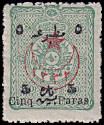 provisorischer Drittaufdruck: Briefmarke die mit einem behelfsweise geschaffenen Drittaufdruck versehen wurde |