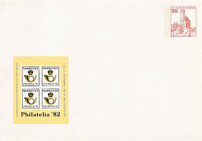 Ganzsache mit einem Wertstempel: Druckbogen der als beabsichtigte Aus-führung mit einem einzigen Wertstempel versehen wurde |
