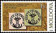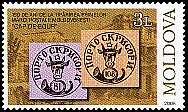 Ochsenköpfe: Dauerbriefmarken aus dem Fürstentum Moldau 1858 mit der Abbildung eines Ochsenkopfs über einem Posthorn (Wappen) |