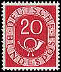 Posthornsatz: Dauerbriefmarken aus der BRD 1951 - 1952 mit der Abbildung einer Wert-angabe über einem Posthorn |
