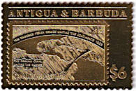 the same postage stamps on gold, silver or green metal foil |