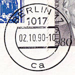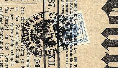 Zeitungsdruckentwertung: Briefmarke die als beabsichtigte Ausführung mit einem ge-druckten Zeitungstext entwertet wurde |