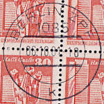 gedruckte Entwertung Stellungsparal-lelausgabe: gleiche Briefmarken die gleichzeitig mit einer gedruckten Ent-wertung in unterschiedlichen Positionen entwertet wurden |