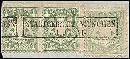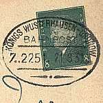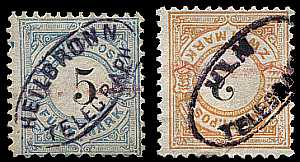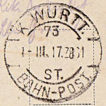 nachträglich entwertet Bahnposthand-stempel: Handstempelgattung mit der ver-sehentlich nicht entwertete Postwert-zeichen auf einer Bahnpostsendung nach-träglich gestempelt wurden |