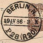 Rohrposthandstempel: Handstempel-gattung als Einlieferungs-, Durchgangs- oder Ankunftsstempel für eine Postsendung mit Rohrpost |