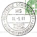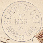 Schiffsposthandstempel: Handstempel-gattung als Einlieferungsstempel für eine Postsendung die mit einem Schiff befördert wurde |