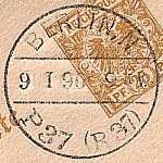 Bahnposthandstempel: Handstempel-gattung als Einlieferungs-, Durchgangs- oder Ankunftsstempel für eine Postsendung die mit der Eisenbahn befördert wurde |