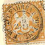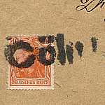 Schiffsposthandrollstempel: Handroll-stempelgattung als Einlieferungsstempel für eine Postsendung die mit einem Schiff befördert wurde |