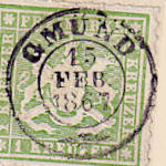 Subsequently Used Hand Postmark: hand postmark of a postal administration that was continued to be used by the subse-quent postal administration after its dissol-ution (e.g. Hanover -> NDP or NDP -> German Empire) |