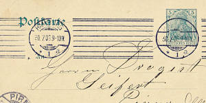 Camouflage Machine Postmark: machine postmark without town information, e.g. for field post shipments to conceal the location of troops during a war |