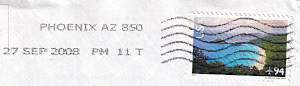 einsprachige Tintenstrahlentwertung: Briefmarke die als beabsichtigte Ausführung mit einer Tintenstrahlentwertung unter Ver-wendung einer einzigen Sprache entwertet wurde |