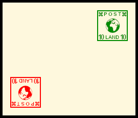 zusätzlicher falscher kopfstehender Wertstempel: Ganzsache mit echtem Wertstempel die in betrügerischer Absicht mit einem um 180 Grad gedrehten zusätzlichen Wertstempel versehen wurde |