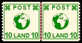 falsches Paar ohne Zähnung in der Mitte: zwei einzelne echte Briefmarken die in betrügerischer Absicht ohne Zähnung dazwischen miteinander verbunden wurden |