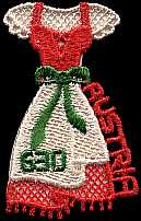 dirndlförmige Briefmarke: gestickte Marke in Form eines alpenländischen Trachtenkleids |