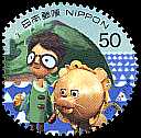 zeltförmige Briefmarke: Marke in Form eines Zelts mit einem Pfadfinder davor |