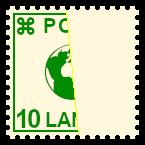 liegend gestreiftes Papier: Briefmarke die als anfallender Ausschuss auf waagrecht anstatt senkrecht gestreiftem Papier gedruck wurde |